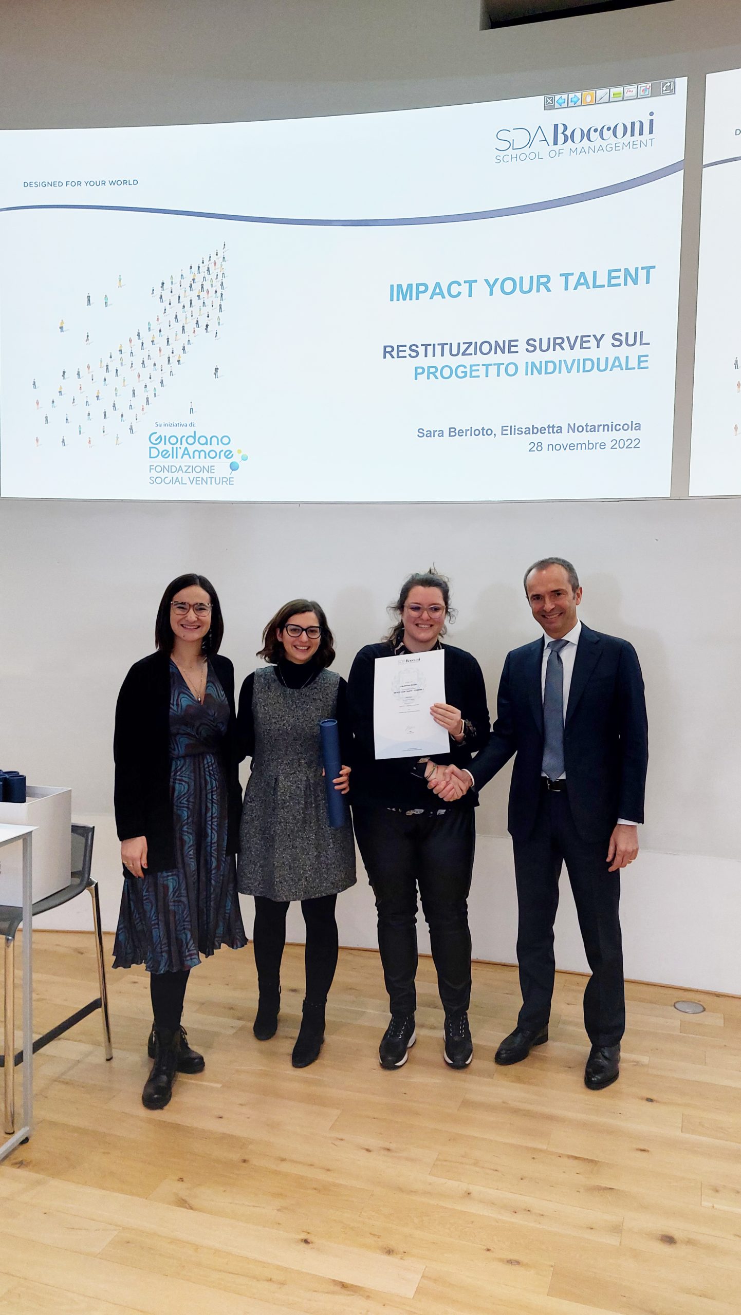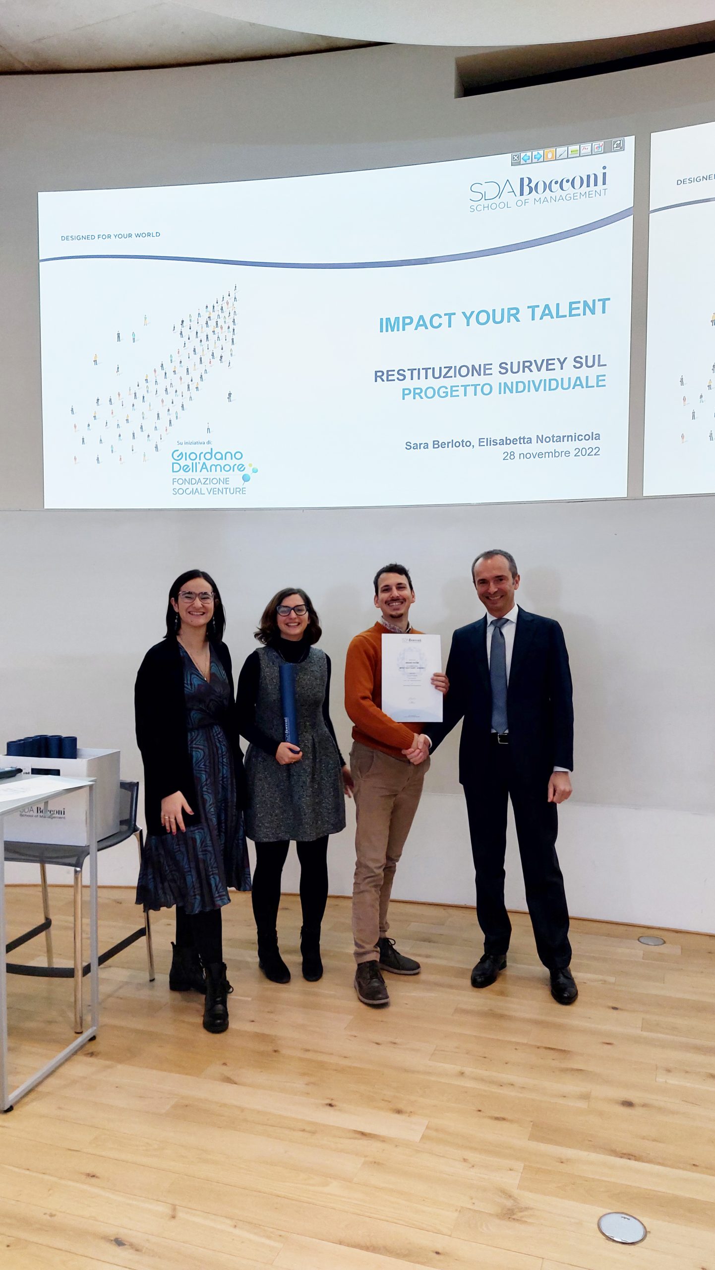 Lunedì 28 novembre la Fondazione Social Venture Giordano Dell’Amore e SDA Bocconi hanno concluso il secondo ciclo di Impact Your talent, il programma formativo che valorizza i talenti dell’impatto sociale nel solco dell’eredità di Giordano Dell’Amore